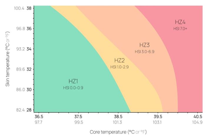 Kerntemperatuur is een belangrijk gegeven om de thermische toestand van een atleet te beoordelen. Toch is alleen kerntemperatuur niet genoeg om de totale belasting op het lichaam te meten. Dit komt omdat prestatieverlies eerder optreedt als de huidtemperatuur hoger is, zelfs bij een gelijke kerntemperatuur. Dit komt door de toename van hartslag en bloedtoevoer naar de huid. Bovendien zorgt een hogere huidtemperatuur voor meer ongemak tijdens het sporten in de hitte.