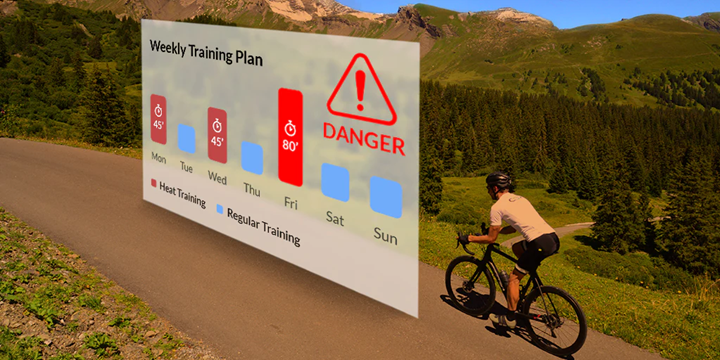 Excessive thermal load can come from excessively high core body temperatures. Core temperatures above the heat training zone will cause a performance degradation. In training, it is best to minimize time spent at these temperatures. Similar to overtraining, it creates excessive stress which can be detrimental to training. And reaching very elevated core temperatures is dangerous and can lead to heat exhaustion or heat stroke.Excessive thermal load can also be caused by too much time in the heat training zone – either in one session or cumulative weekly time. This can cause sluggishness and decreased performance. Cumulative thermal load should be prescribed by a coach based on specific goals (ie. a heat block training versus maintaining benefits).