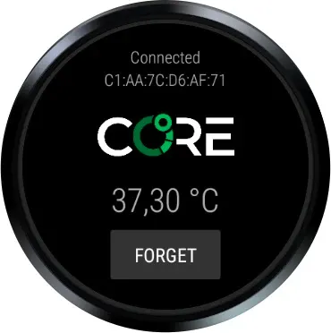 Note: When you enter battery saver mode, turn off bluetooth, when you are out of range with your CORE or when your CORE has run out of battery, your watchface will no longer be able to display your current Core Body Temperature.