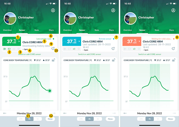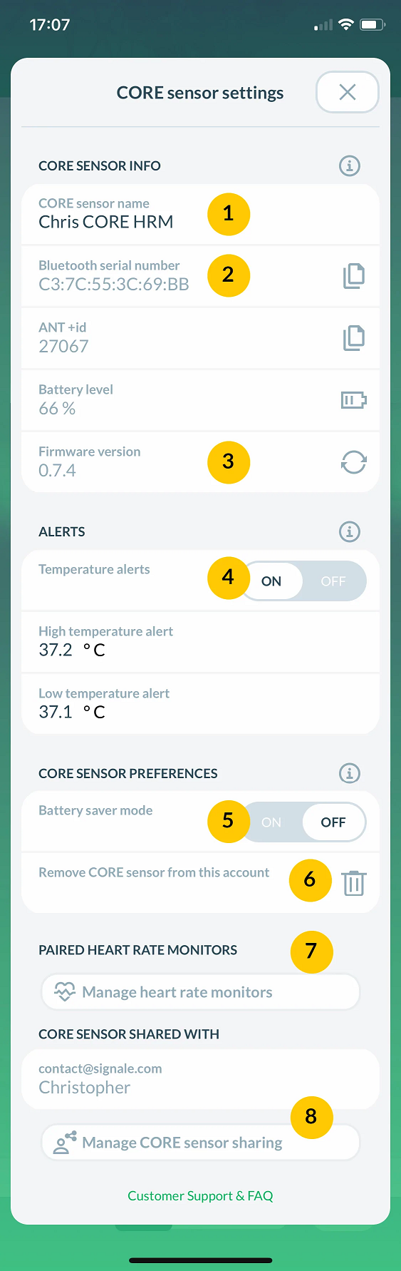 Als er nog geen CORE sensor is toegevoegd, klik dan op (+) om een sensor toe te voegen. Als er al een CORE sensor is toegevoegd, klik dan op 'switch or add CORE sensor'.
